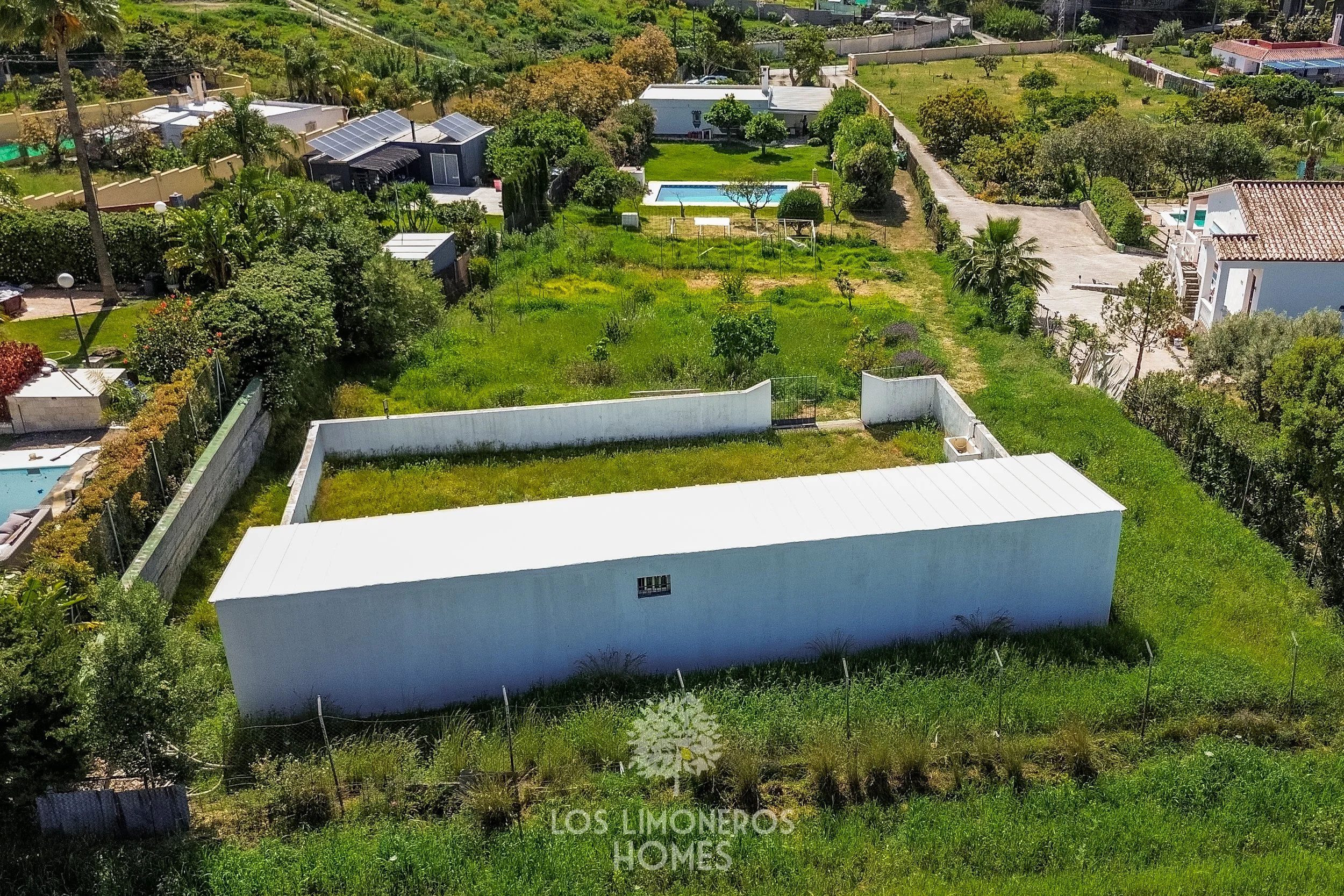 El resto del terreno está ajardinado con una variedad de árboles frutales, como aguacates, limoneros, mangos y naranjos, creando un entorno natural y productivo.